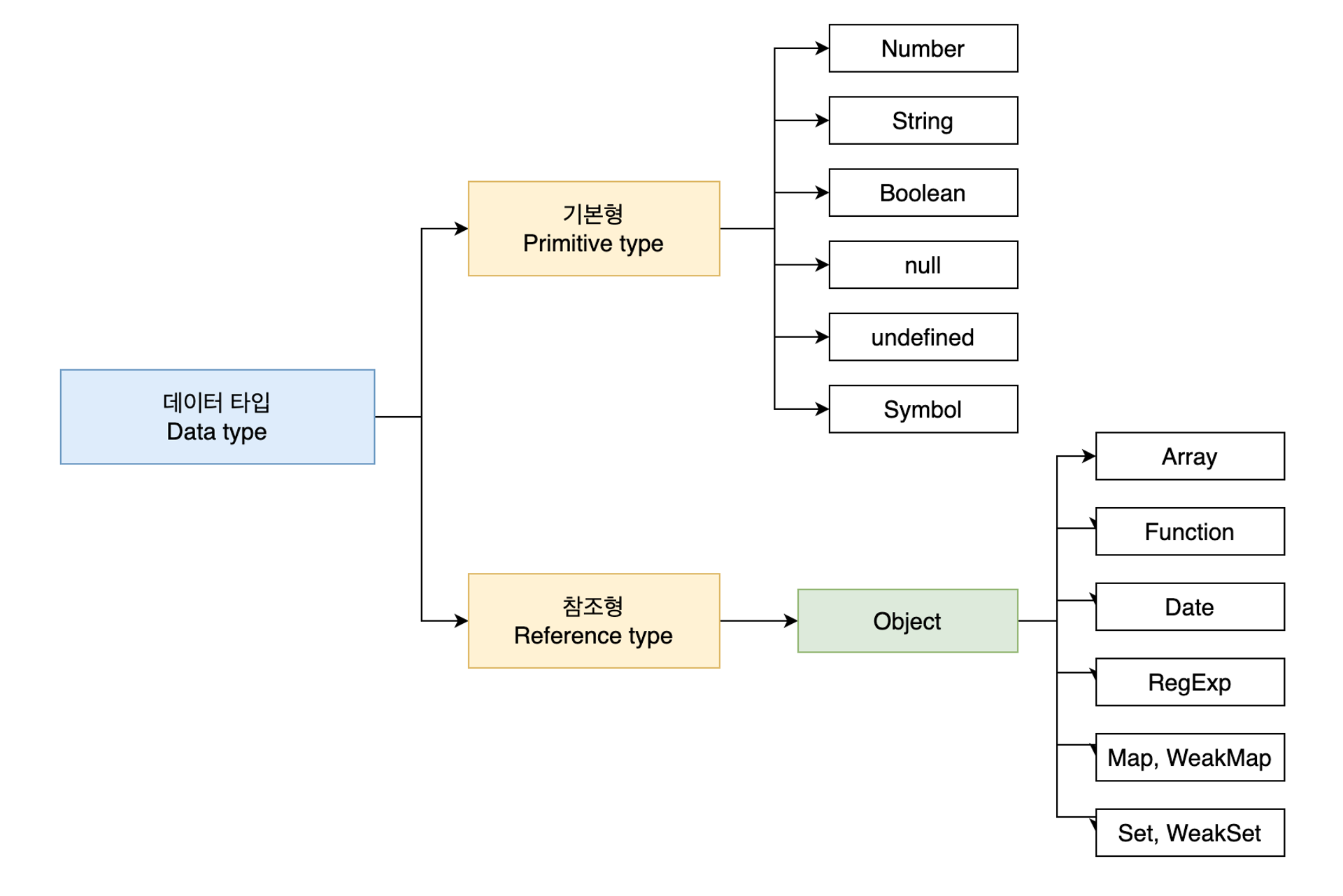 자바스크립트에서 값의 타입은 크게 기본형과 참조형으로 구분된다.