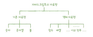 - 실체가 있는 것 중에서 객체가 아닌 것을 기본 자료형이라고 하며, 숫자, 문자열, 불이 대표적 예이다.