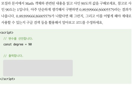수학과 관련된 기본적인 연산을 할 때는 Math 객체를 사용한다. Math 객체 속성으로는 pi, e와 같은 수학 상수가 있다. 메소드로는 Math.sin(), Math.cos(), Math.tan()와 같은 삼각함수도 있다.